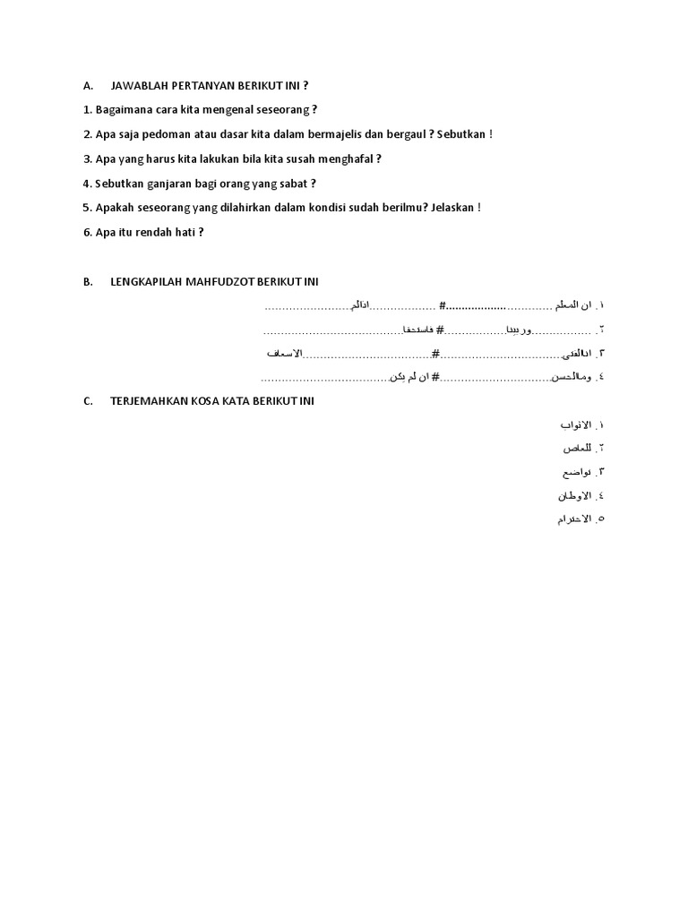 Soal mahfudzot kls 2 int deha banjar. Dimana letak keselamatan seseorang itu. Soal tamrinat kls 2 int.